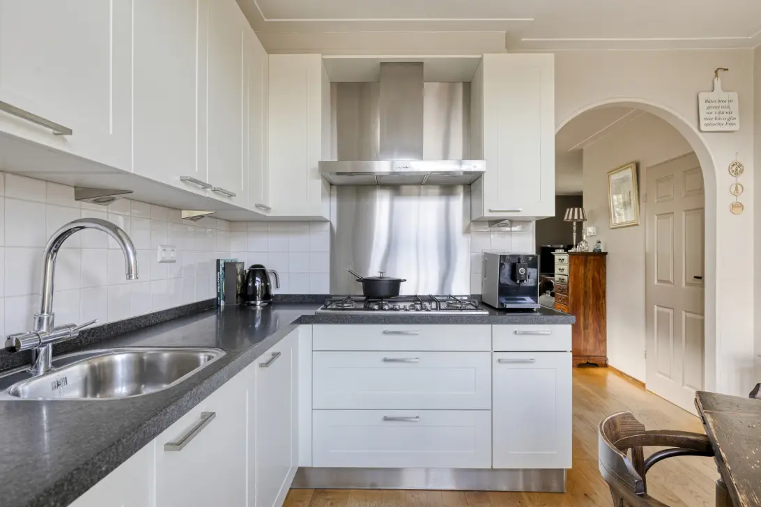 Een ruimte overloop, toiletruimte en dan binnenkomend in de ruime L-vormige woonkamer voel je direct de fijne ambiance van dit huis. Grote ramen laten het daglicht binnenstromen en vrij uitzicht aan de voorzijde, terwijl een praktische indeling ervoor zorgt dat je deze ruimte gezellig kunt inrichten. Door de slimme aansluiting op de woonkeuken blijf je altijd verbonden met je gasten, of je nu een uitgebreid diner bereidt of een snelle kop koffie zet. Vanuit de keuken uitgevoerd in L-opstelling + diverse inbouwapparatuur, loop je direct door naar het ruime dakterras van ca. 36 m2 met een heerlijk groot zonnescherm.