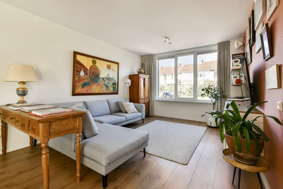 The neighborhood has a village feel, yet is right in the middle of the city. You can easily walk to public transport, shops, supermarkets, and schools. Around the house, you will find plenty of greenery, with various playgrounds. The Plein ’40–’45 shopping center with its market is just around the corner. By bike, you can reach Westerpark, the Sloterplas, the Jordaan, or the center of Amsterdam in no time. Sloterdijk Station is within walking distance. You can be at the Royal Palace on Dam Square by tram within 20 minutes. Other connections include tram 7 to Leidseplein, tram 14 to Rembrandtplein, and various buses to Amsterdam Central Station and Schiphol. By car, you can reach the A10 ring road within a few minutes, with connections to the A1, A2, A4, A5, and A9, and Schiphol Airport is just a 15-minute drive away.