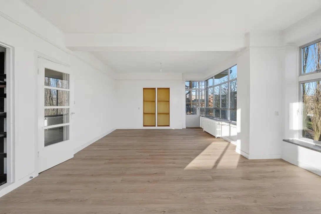 This apartment is located on the second floor and has a living area of approximately 128 m² (including a shared intermediate hallway of approximately 4 m²). The apartment forms part of the “12-storey building”, also known as “De Wolkenkrabber van Amsterdam”, designed by architect J.F. Staal, a pupil of architect H.P. Berlage.