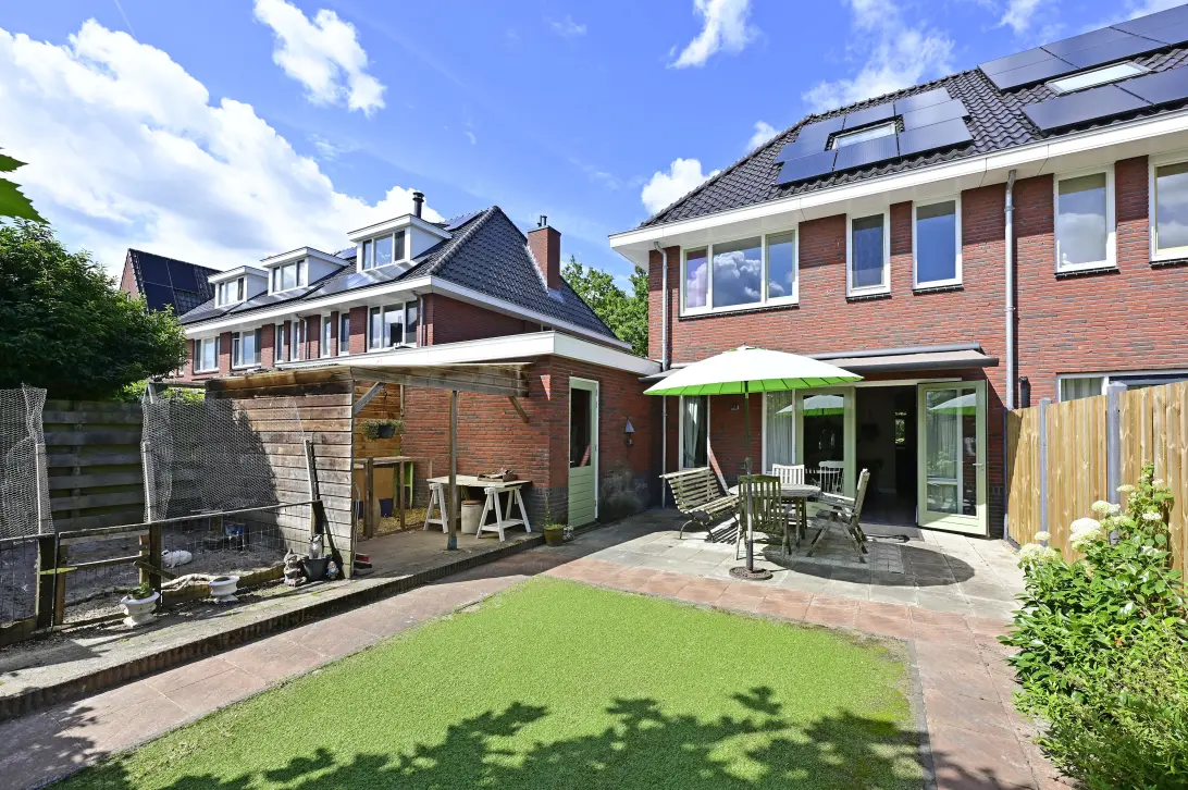 De woning beschikt over een zonnige en onderhoudsvriendelijke achtertuin op het Oosten, met veel privacy en geen directe inkijk van achterburen. Een ruim terras met een sfeervol ‘vloerkleed’ van Portugese tegels maakt het plaatje compleet. Een heerlijke plek om te genieten van de ochtendzon of lange zomeravonden in alle privacy.