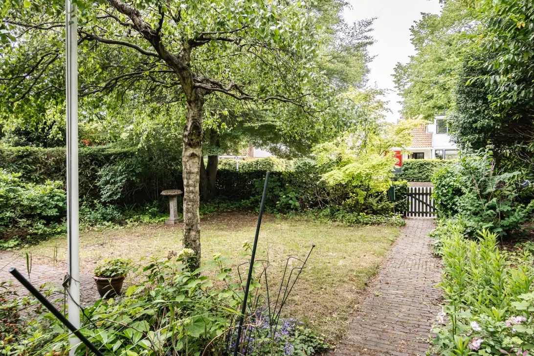 This comfortable family home of generous proportions offers a unique opportunity to renovate according to your own taste and turn it into a dream home with all modern conveniences. Upon entering, the spacious and welcoming hallway greets you and leads to the impressive living room with an authentic ambiance. This space is a real eye-catcher, featuring a surprising layout that includes a cozy dining area and sitting area. From here, there is direct access to the sunny front garden with a large lawn and sunny patio, the ideal spot to enjoy the sun. Additionally, there is a second seating area with an atmospheric fireplace, perfect for unwinding as the sun screens on the side windows provide extra privacy or protection from the sunlight. The separate kitchen offers ample opportunities to create a convivial space. The high ceiling and the skylight give it an airy feel. A door from the kitchen leads directly to the secluded backyard, which is surrounded by trees and thus offers a lot of privacy. In the morning and early afternoon, the garden captures sunlight, making it an excellent place for quiet sunbathing. Furthermore, the garden, with its shady spots, provides the perfect setting for relaxation. There is also a storage shed for additional space to store garden supplies. For guests, there is a cozy little studio available, complete with a living/sleeping area and its own bathroom with all necessary amenities. The mezzanine, accessible via a staircase, features a skylight and offers additional space and light. The driveway at the rear provides space for multiple cars and leads to the attached stone garage, which has enough storage space and room for one car. In the heart of the living room is the staircase to the first floor. The spacious landing provides access to four generous bedrooms, each with a unique character. One of the rear bedrooms gives access to the attic, ideal for extra storage space. The master bedroom comes complete with an en-suite bathroom, equipped with a delightful bathtub for relaxing moments, and a southwest-facing balcony with beautiful views of the front garden. Additionally, there is another separate smaller bathroom on the landing, perfect for guests or children. This floor offers numerous possibilities to meet various living needs. Do not miss the chance on this beautiful property with character in one of the most sought-after locations in Bloemendaal!