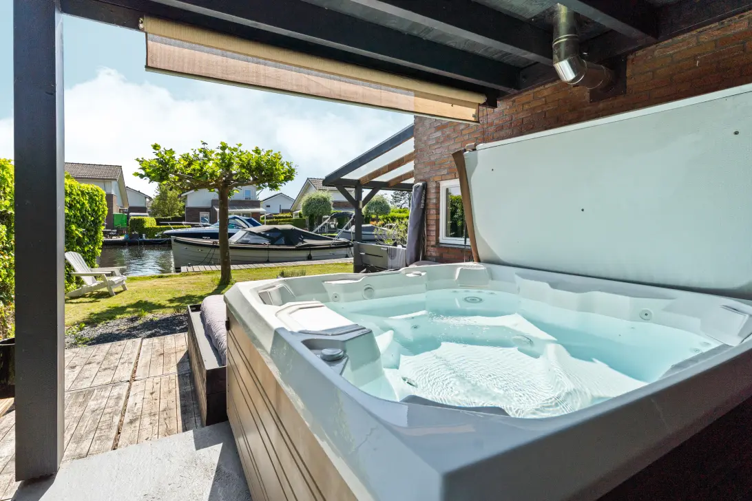 De tuin aan de waterzijde ligt op het zuiden: perfect voor zonaanbidders. Aan de waterkant bevindt zich een brede steiger om je boot aan te leggen. Naast het huis is nog een overdekt terras op een gefundeerde betonplaat.