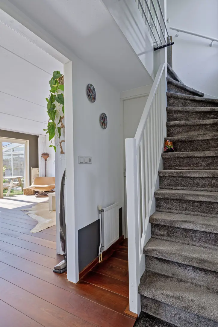 In de achtertuin heeft u lekker veel privacy. U vindt hier een uitstekend verzorgd gazon, meerdere zonneterrassen, een buitendouche met warm water en uiteraard de aanlegsteiger met zwemtrap zodat u zomers een frisse duik kunt nemen vanuit uw tuin!