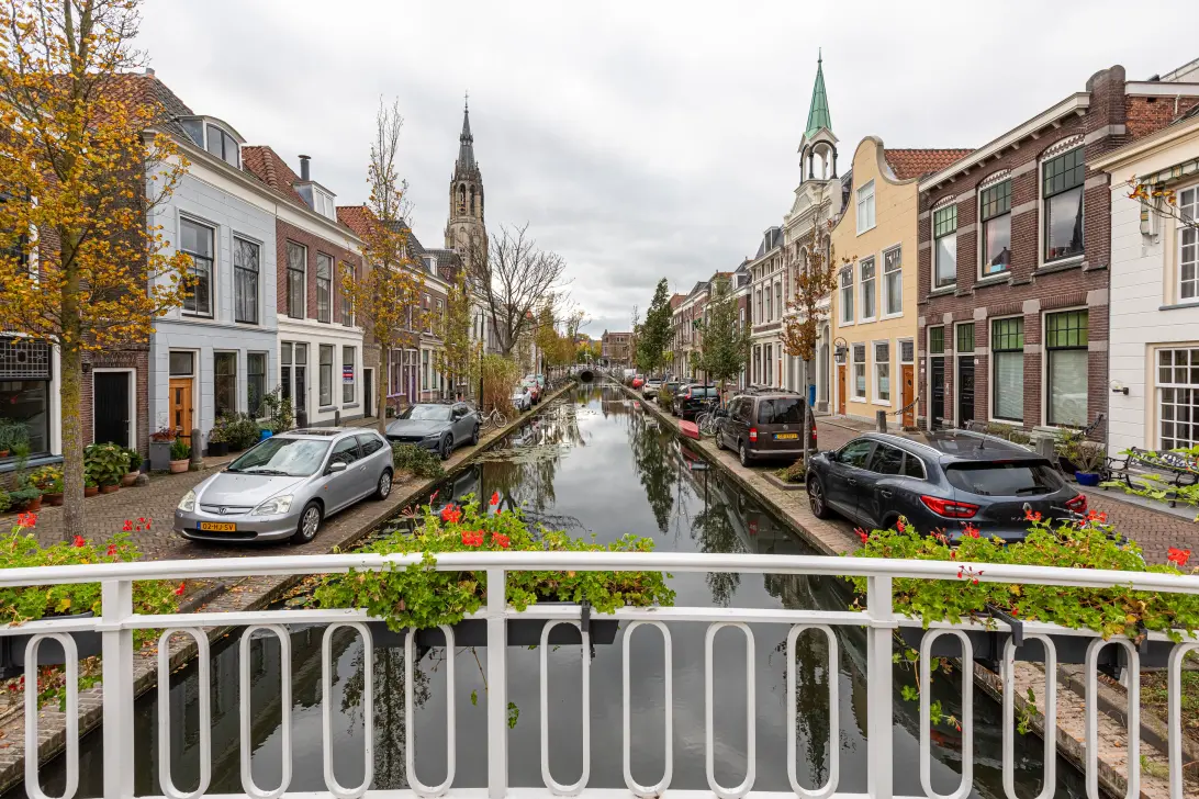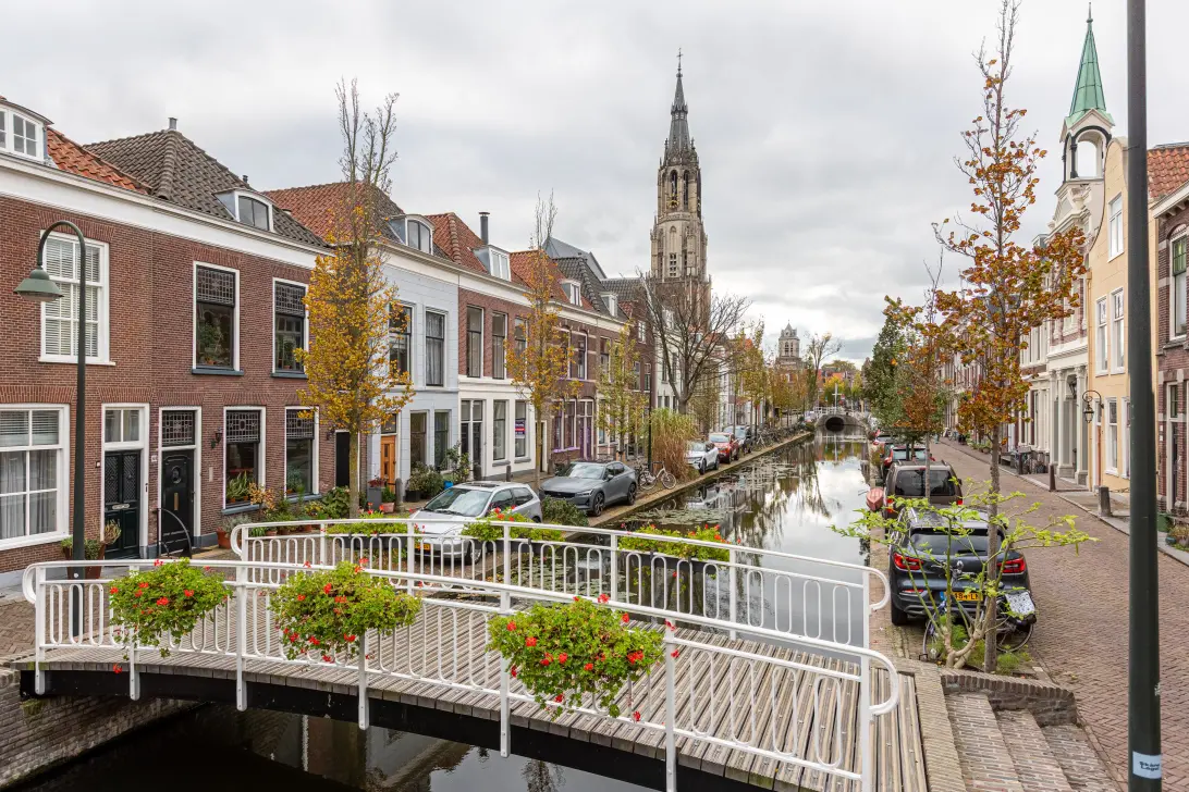 Aan deze charmante gracht in hartje Delft bevindt zich deze ruime en lichte bovenwoning, die recent grotendeels is gerenoveerd. Het huis biedt een ideale combinatie van authentieke details en modern wooncomfort. De lichte woonverdieping, de fraaie kap met zichtbare spanten en het uitzicht op de torens van de Nieuwe Kerk maken dit tot een unieke plek om te wonen.