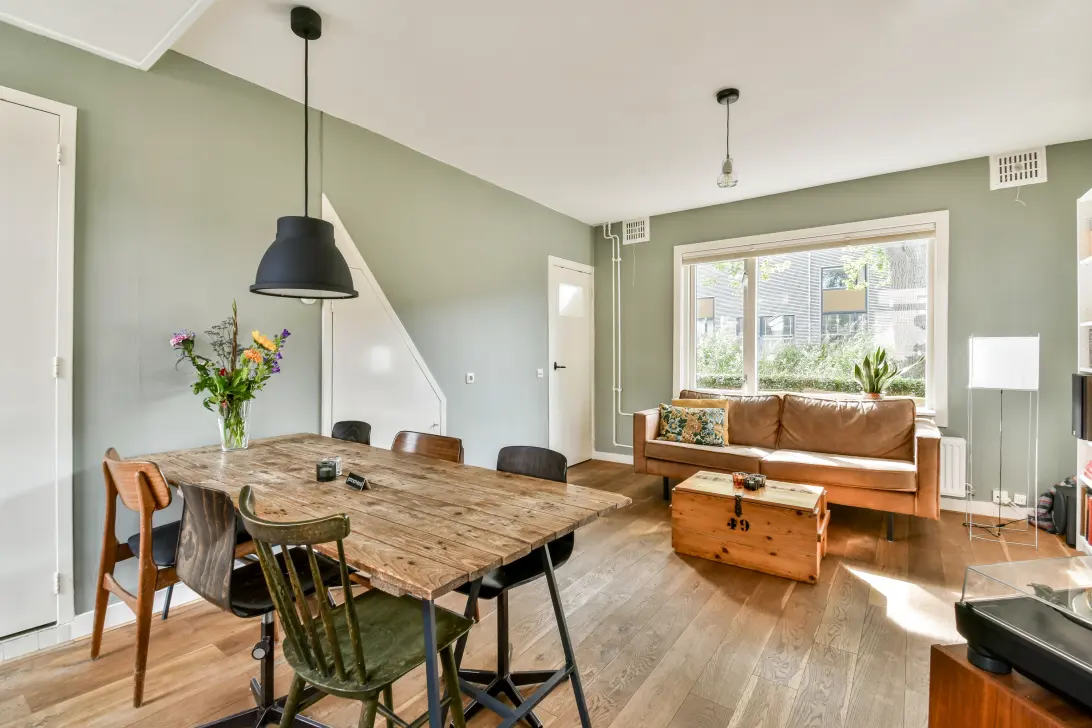 In the atmospheric and characteristic Vogeldorp in Amsterdam-Noord, this charming terraced house is now for sale. An oasis of peace surrounded by greenery, yet just a stone’s throw away from the vibrant city life with trendy restaurants and creative hotspots. The turnkey home is divided over two floors, featuring both a front and back garden, and directly borders a spacious communal courtyard garden. A place where tranquility and urban dynamics come together.