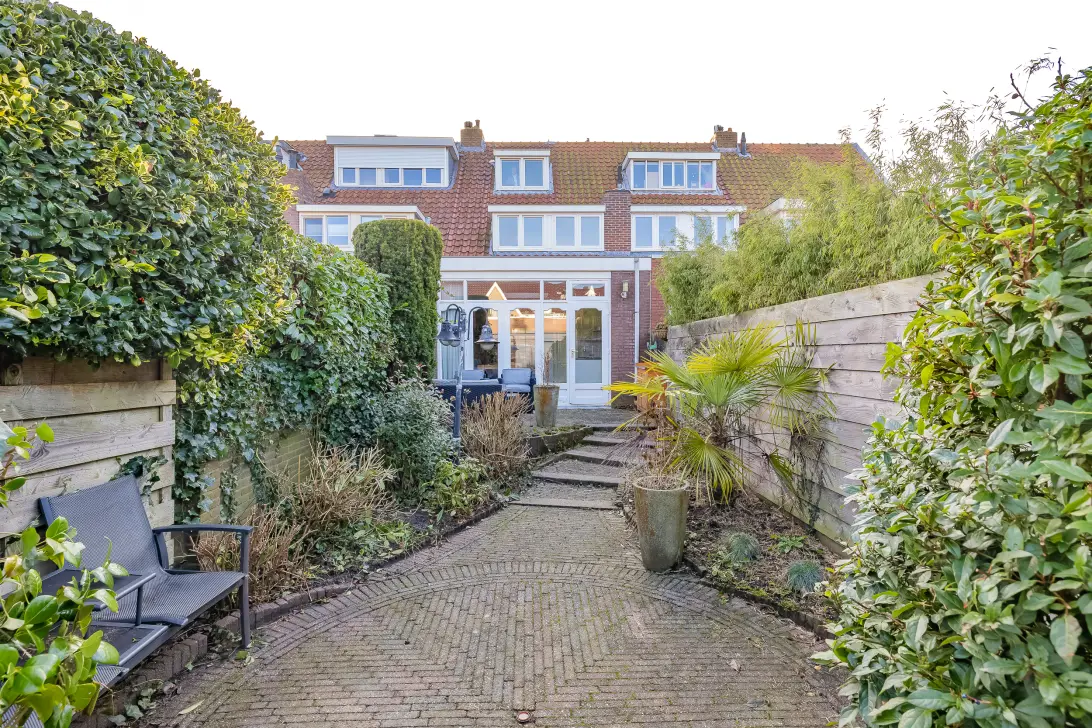 In het brede gedeelte van deze straat en binnen de gezellige dorpskern van Santpoort-Noord gelegen ruime (aan de achterzijde flink uitgebouwde) 30-er jaren erkerwoning met een diepe, zonnige achtertuin, een stenen berging en goed toegankelijke achterom.