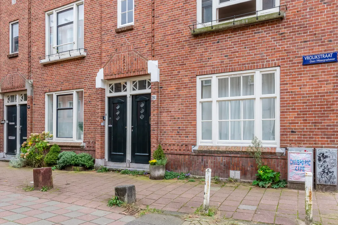 De Vrolikstraat ligt in de geliefde Oosterparkbuurt, tussen het Oosterpark en de Amstel, met de bruisende Pijp en de Weesperzijde op loopafstand. In de directe omgeving vindt u gezellige cafés, restaurants, winkels, scholen en goede verbindingen met het openbaar vervoer. Station Amstel en metrohalte Wibautstraat zijn binnen enkele minuten bereikbaar.