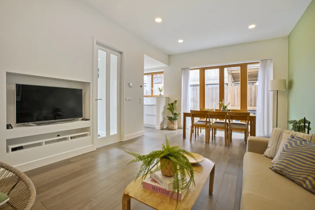 Beautifully light, spacious, and sustainably constructed from solid wood from 2018. This 92m² apartment is located in the popular Buiksloterham district in Amsterdam.