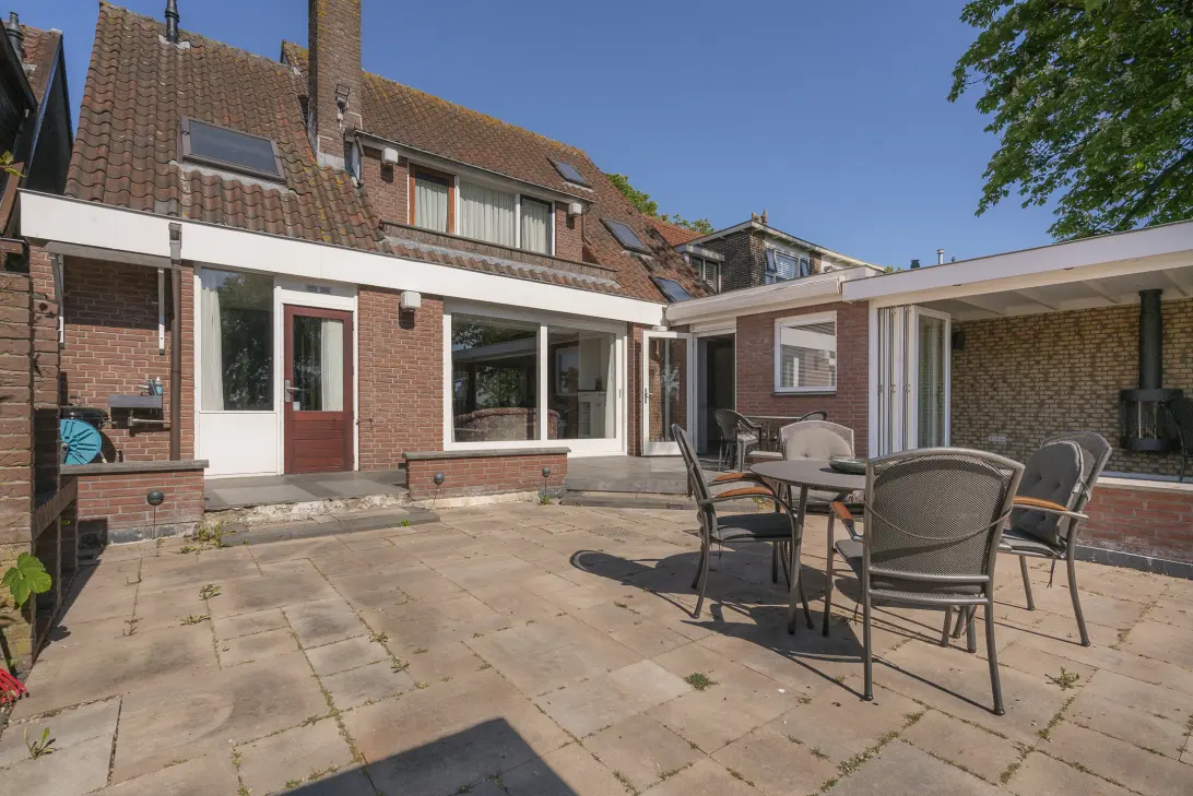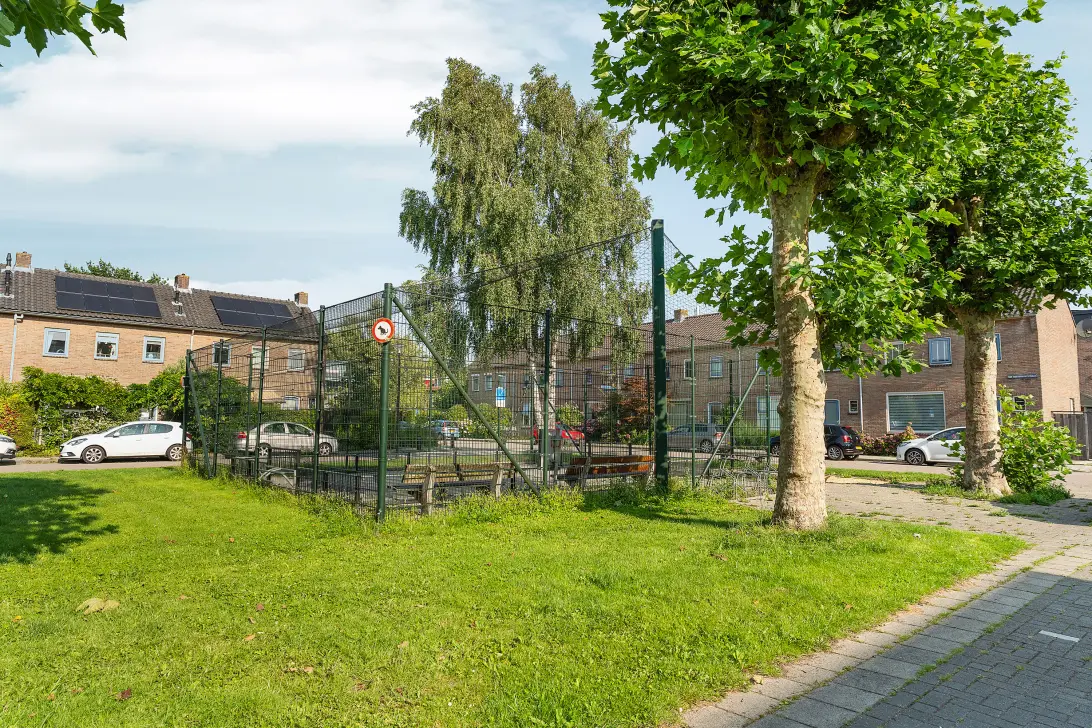 Met uitzicht op het trapveldje ligt aan de voorzijde van het huis een charmante voortuin waar genoeg ruimte is voor fietsen. De hoofdtuin ligt op het zonnige zuiden en biedt volop privacy. De brede oprit met garage is afgesloten met houten poorten, en de overdekte zithoek met zonnescherm maakt buiten genieten het hele jaar door mogelijk.
