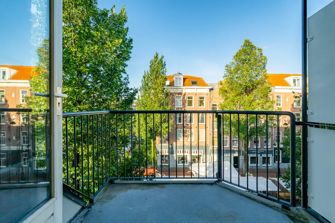 De woning is voorzien van 2 balkons, 1 aan de voorzijde (zuidwesten) en 1 aan de zijgevel (zuidoosten).