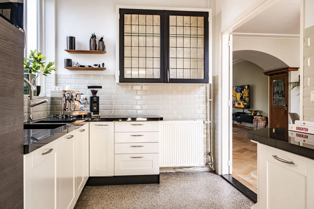 Met maar liefst 6 slaapkamers, 2 badkamers en een ruime tuinkamer, is dit huis perfect voor gezinnen die op zoek zijn naar een woning waar iedereen zijn eigen plek heeft – en waar samenkomen net zo fijn is. De woning is zo te betrekken en uitstekend onderhouden, waarbij de charme van vroeger bewaard is gebleven dankzij prachtige authentieke details. In de woonkamer ligt een sfeervolle visgraat parketvloer met bies en zitten 2 charmante serviesinbouwkasten met glas in lood.