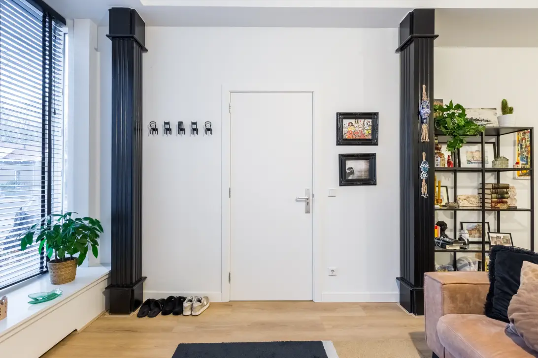 In het gehele appartement ligt een mooie, lichte houten vloer en de wanden en plafonds zijn strak afgewerkt.