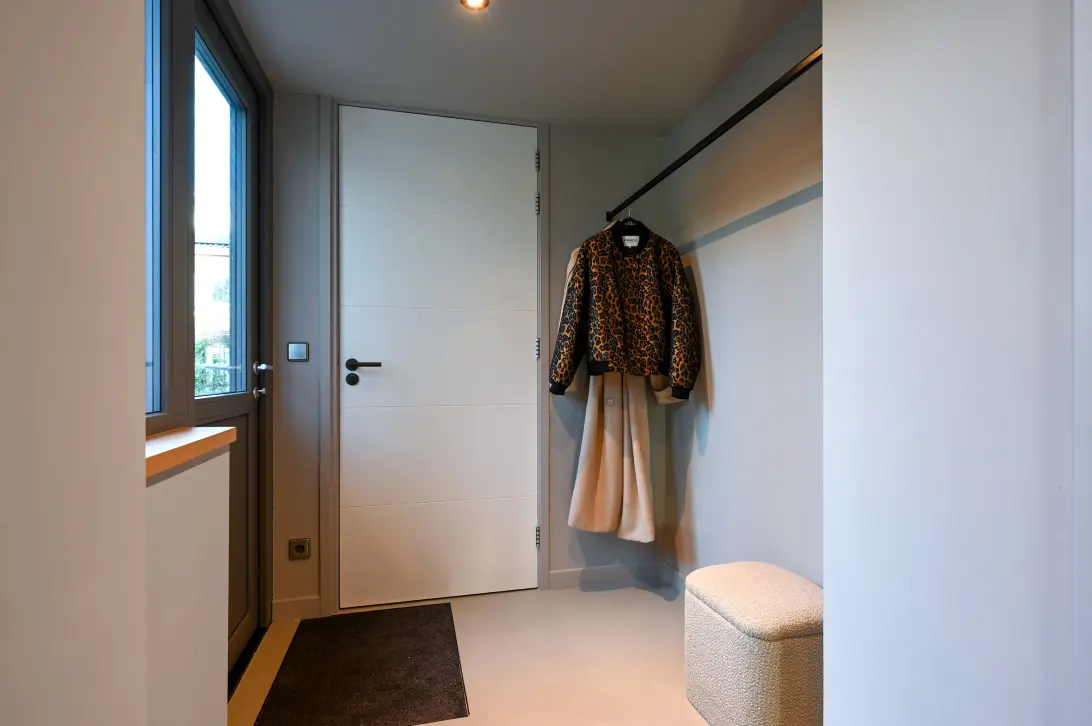 De volledig nieuwe tweede verdieping vormt een heerlijke privéverdieping met een royale master bedroom, een luxe en-suite badkamer en een aparte kamer die ideaal is als werkplek of extra bergruimte. De slaapkamer heeft aan beide zijden praktische inbouwkasten, waardoor alles netjes kan worden opgeborgen. In de ruime badkamer met vloerverwarming kun je ontspannen in het hoekligbad of genieten van de dubbele douche met sunshower. Verder vind je hier een dubbel wastafelmeubel en een eigen toilet. In de extra kamer zijn alle aansluitingen voor de warmtepomp en technische installaties netjes weggewerkt. Deze verdieping biedt modern comfort, rust en veel praktische ruimte.