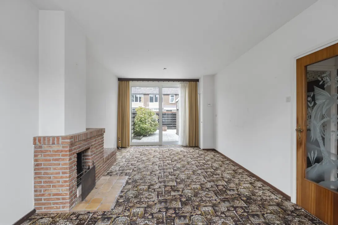 Via de hal/entree met trapopgang en toilet kom je in de woning. De dichte keuken bevindt zich aan de tuinzijde. De lichte woonkamer heeft een schuifpui naar de tuin en biedt uitzicht op het groen.