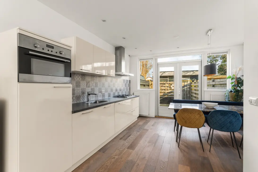 Wie op zoek is naar de warme sfeer van de Zaanse houtbouw uit 1930 gecombineerd met het comfort van nu kan hier zijn hart ophalen! Rond 2016 heeft dit charmante hoekhuis een ware metamorfose ondergaan: een herstelde fundering inclusief geïsoleerde begane grondvloer met schuimbeton, kunststof kozijnen, een moderne indeling met open keuken, tweede toilet boven en twee ruime slaapkamers waar gemakkelijk weer een derde gerealiseerd kan worden. Vanuit de gezellige en moderne woonkeuken stap je via de openslaande deuren zo de knusse tuin in waar de eigen, vrijstaande berging te vinden is. Deze multifunctionele ruimte van ca. 18 m² kan tevens ingericht worden als werkruimte aan huis.