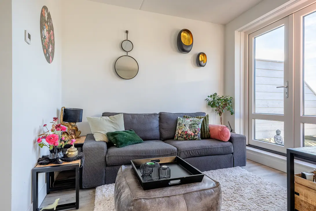 Vanuit de woonkamer stap je zo het zonnige terras op — een heerlijke buitenplek waar je in alle rust kunt genieten van een kop koffie of een warme zomeravond.