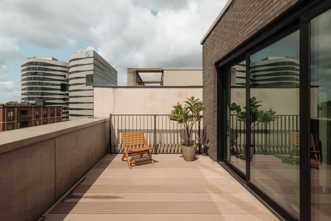 - Twee royale balkons aan de voor- en achterzijde, en een waanzinnig dakterras op het zuidwesten;