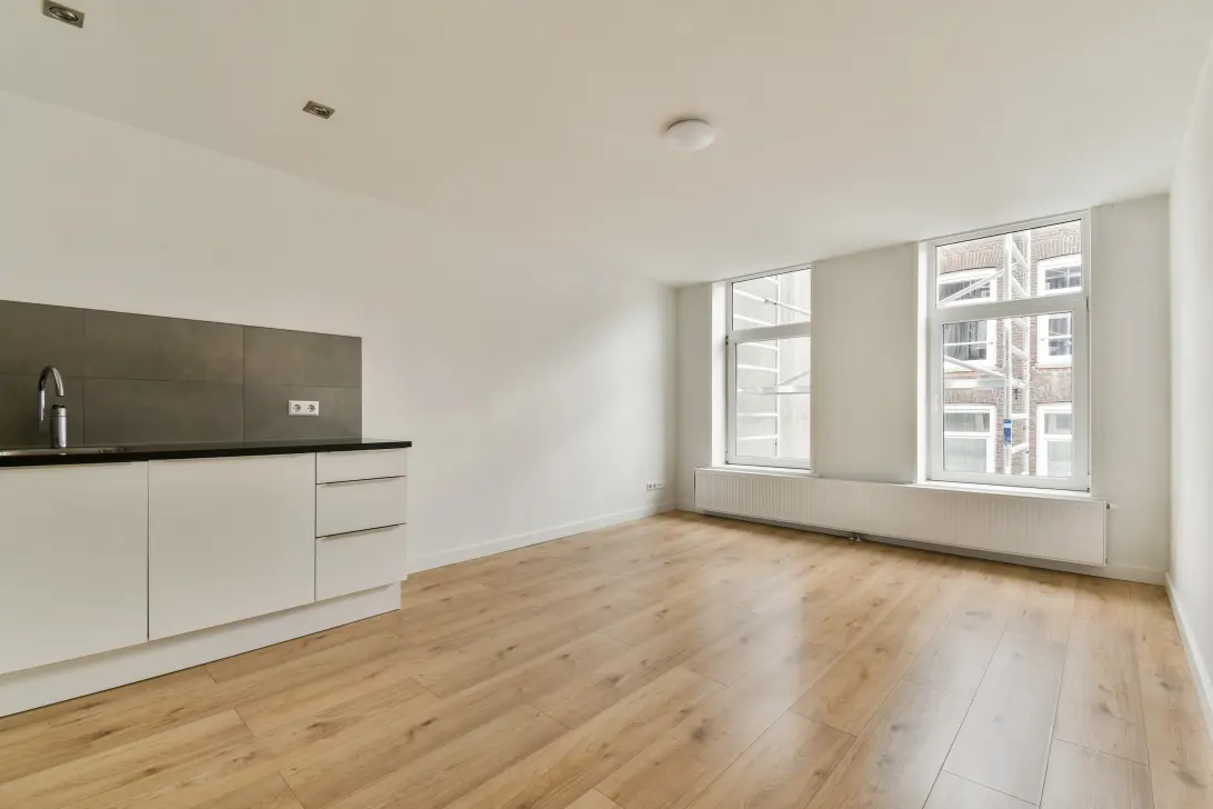 De grote raampartij met Frans balkon én het zijraam zorgen samen voor een lichte, open en zonnige woonruimte met uitzicht op de binnentuin. Dankzij de extra 4 m² is er meer indelingsvrijheid voor een comfortabele woon-/slaapruimte met plek voor een tweepersoonsbed, kledingkast en een gezellige zit- of eethoek.