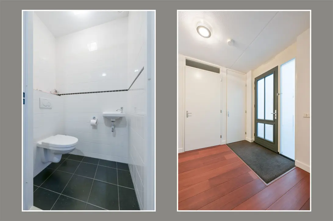 - entree met hal, toilet en een ruime, lichte woonkamer;