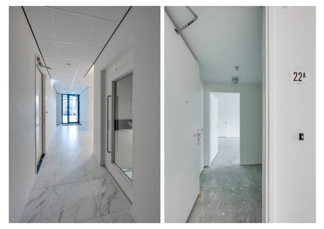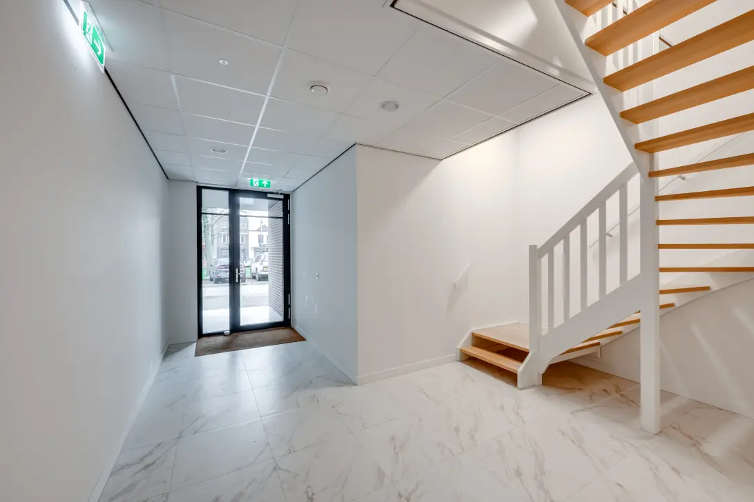 Centraal afgesloten entree met bellenbord/videofoon. Via de lift of het trappenhuis wordt de tweede verdieping bereikt.