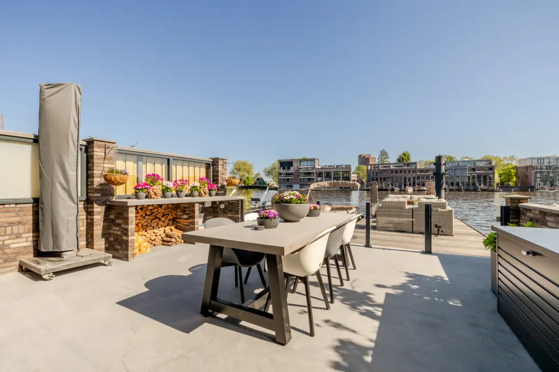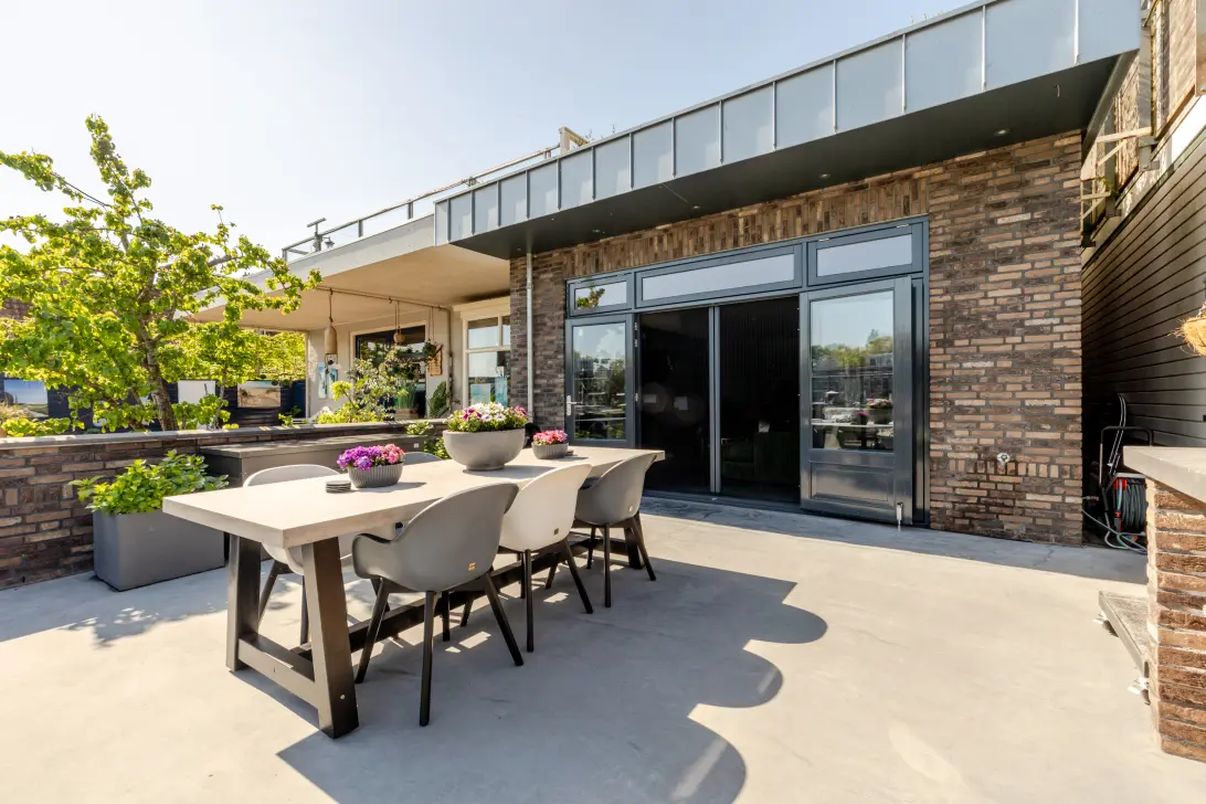 Via de woonkamer loop je zo de vernieuwde tuin in, gelegen op het noordoosten. Begin je dag met zon en sluit af met rust aan het water. De steiger ligt klaar voor je boot, sup of kano. Dit is niet zomaar een tuin – dit is jouw privé plek aan de Zaan.