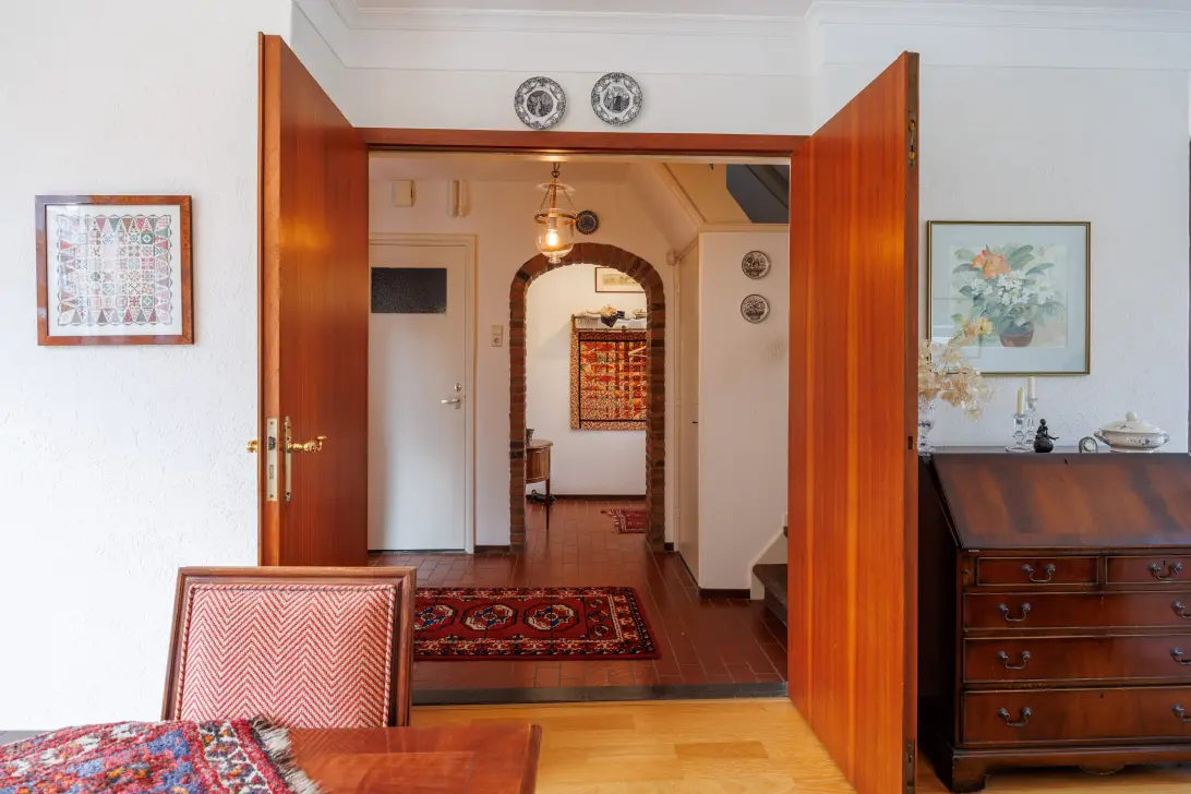 Deze woning, gebouwd in de jaren ’50, onderscheidt zich door de hoekligging, de royale garage en de verrassend ruime indeling met vier slaapkamers en diverse praktische bergruimtes.