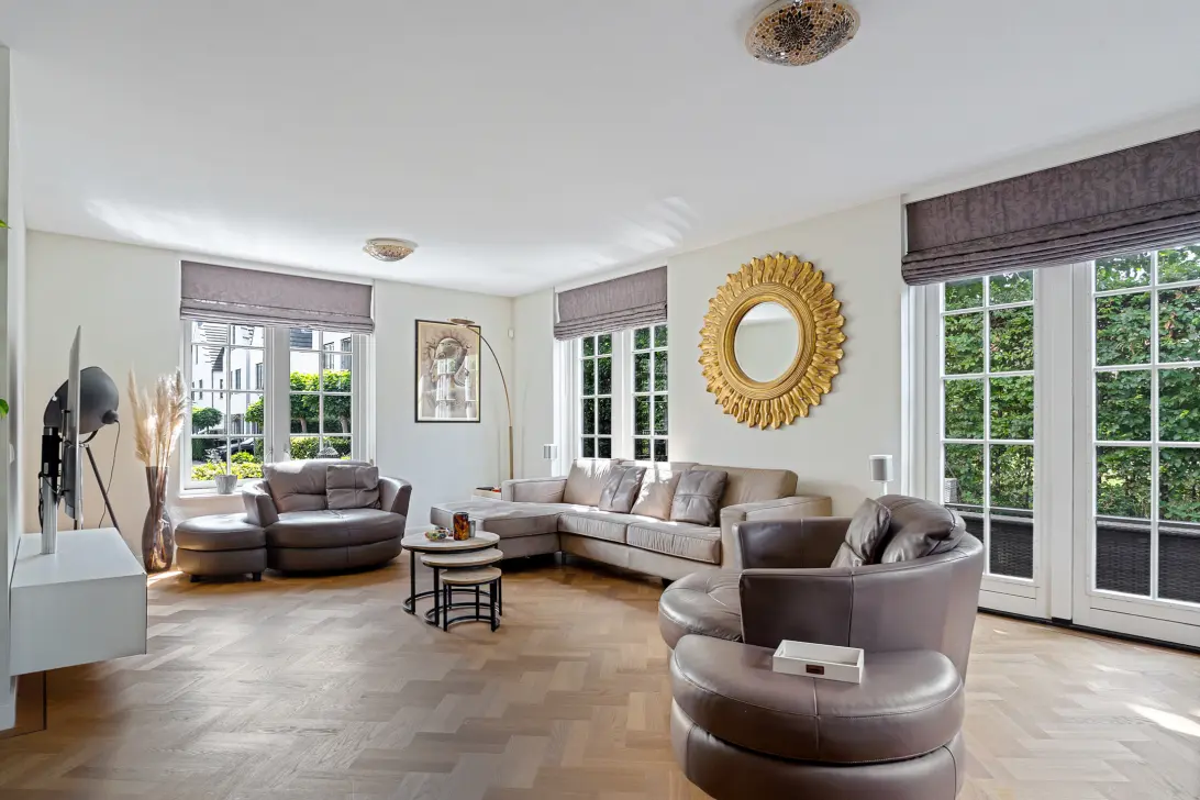 Bij binnenkomst betreedt u de indrukwekkende hal: ruim, licht en met een uitstraling die direct de toon zet voor de rest van de woning. Vanuit hier leidt de weg naar de imposante woonkamer van maar liefst 68 m². Dankzij de grote raampartijen rondom baadt deze ruimte de hele dag in het licht, wat zorgt voor een uitzonderlijk gevoel van vrijheid en elegantie. De living is voorzien van een sfeervolle elektrische haard en een prachtige parketvloer die over de gehele verdieping is door gelegd. Dit maakt het tot een stijlvolle en tegelijkertijd warme plek om te verblijven.