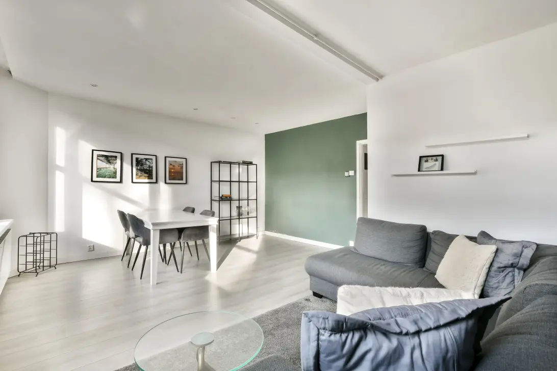 Upon entering, you step into the hallway, which provides access to all rooms of the apartment. At the front, you will find the bright and inviting living room. Thanks to the adjoining side room, this is an exceptionally spacious living area, offering plenty of possibilities to create both a comfortable seating area and a cozy dining space. The large windows ensure an abundance of natural light.