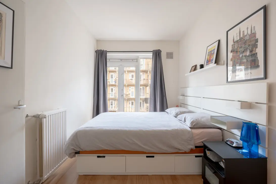 De lichte, L-vormige woonkamer bevindt zich aan de voorzijde en kijkt uit over de groene laan. Aan de achterzijde ligt de ruime hoofdslaapkamer, met voldoende plaats voor een tweepersoonsbed en een kledingkast. Via openslaande deuren is het oostelijk gelegen balkon bereikbaar.