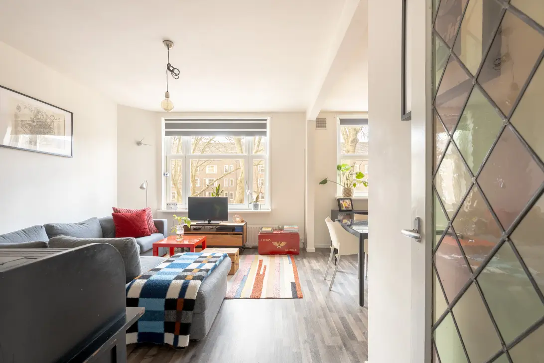 Charmant en uitstekend onderhouden 2-kamerappartement (voorheen 3 kamers) in het geliefde Geuzenhof I-complex, gelegen in het hart van Amsterdam West in de wijk De Baarsjes..