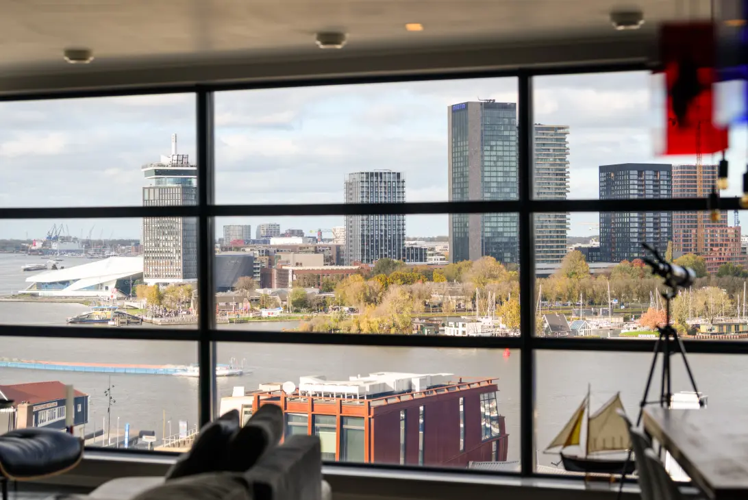 - Panoramisch uitzicht over het IJ en Amsterdam Noord;