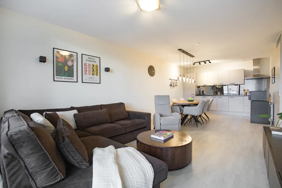 The apartment is located on the second floor, has an energy label A++, and is wonderfully bright thanks to the large windows on the living room side. With three bedrooms, a spacious west-facing terrace and a private parking space on a secured parking deck, this is a comfortable and practical home in a pleasant location.