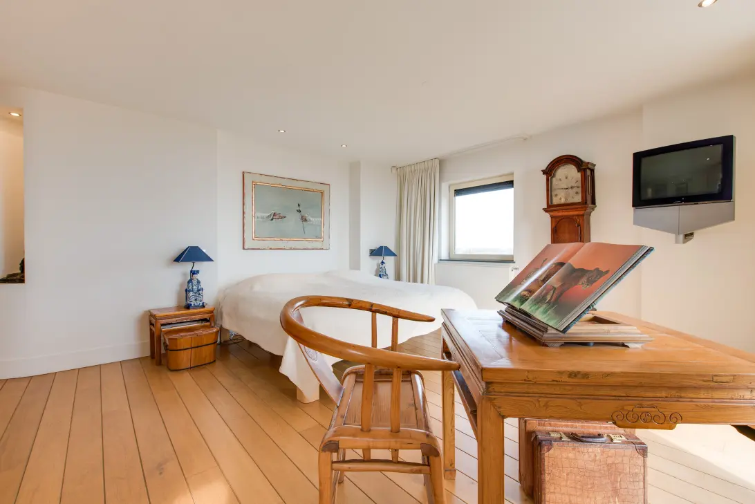 Tweede (slaap)kamer (voorheen 2 aparte kamers), gang, was- en stookruimte, gang met tweede badkamer en derde toilet met fontein. Deze ruimte is af te sluiten van het penthouse en ideaal voor gasten, of te gebruiken als office appartement en te separeren van de overige ruimtes van het appartement.