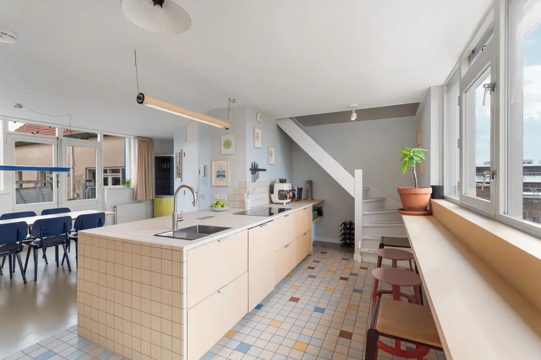 Dit royale woonhuis op de vijfde en zesde etage bevindt zich in het appartementencomplex Het Vierwindenhuis, op de kop van het Wittenburg in Amsterdam Centrum, Oostelijke Eilanden. De woning heeft een woonoppervlakte van maar liefst 153 m² en is uitstekend onderhouden. Het heeft twee livings, drie slaapkamers, twee badkamers en een royale woonkeuken.