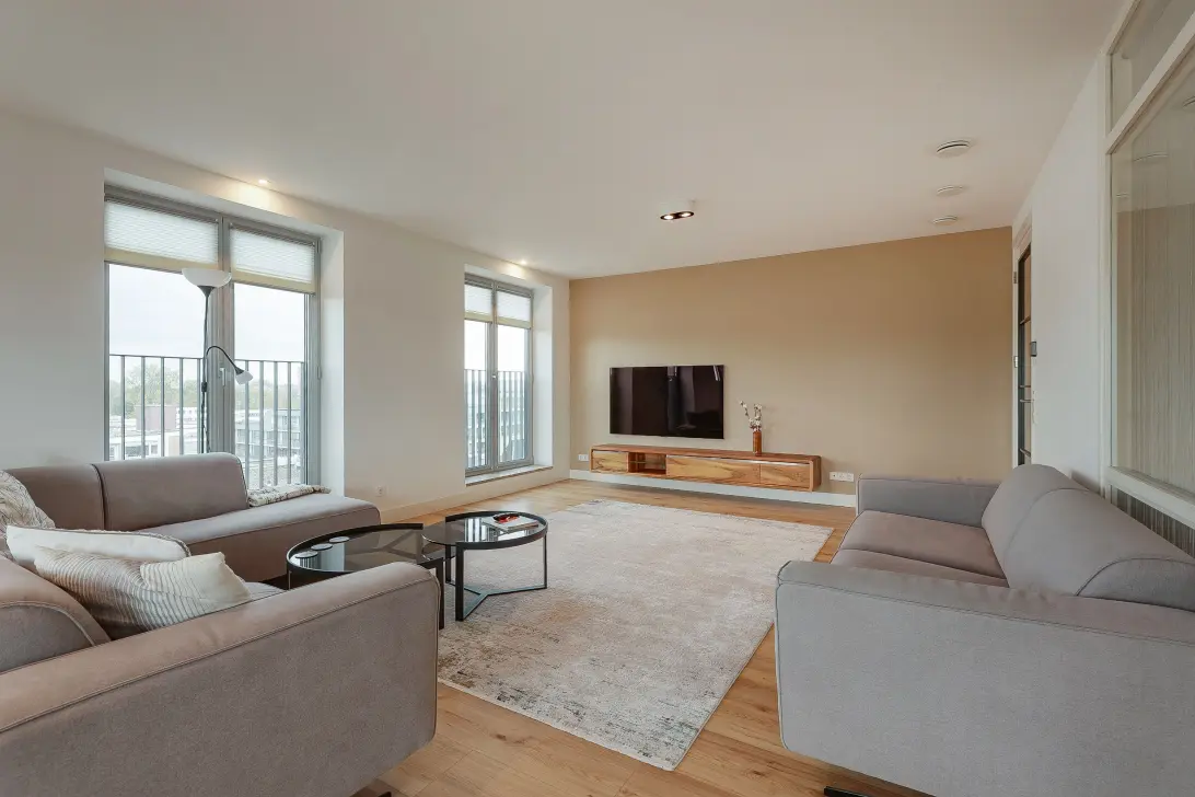 The apartment is located on the 6th floor, with beautiful views of the surrounding area from every room.