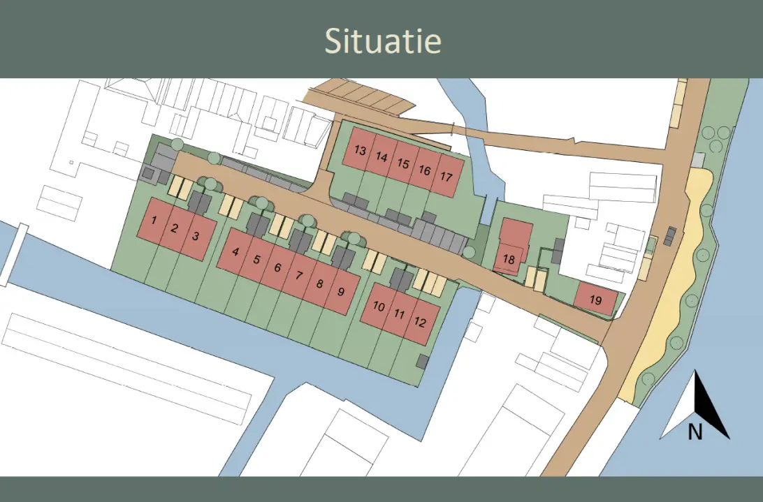 Het project kenmerkt zich door de kleinschaligheid met een ruime opzet. Aan de Noordeinde staat de eerste vrijstaande woning met uitzicht op De Zaan. Daarachter staat de tweede vrijstaande woning en daarachter een dubbele rij met hoek- en tussenwoningen. Ook hier kunnen we melden dat bijna alle woningen met de achtertuin aan water grenzen!