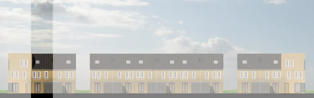 Bouwnummer 14-16 zijn de tussenwoningen in deze rij. Bijna identiek aan bouwnummer 13 en 17 met dien verstande dat deze woningen voorzien worden van een zadeldak.