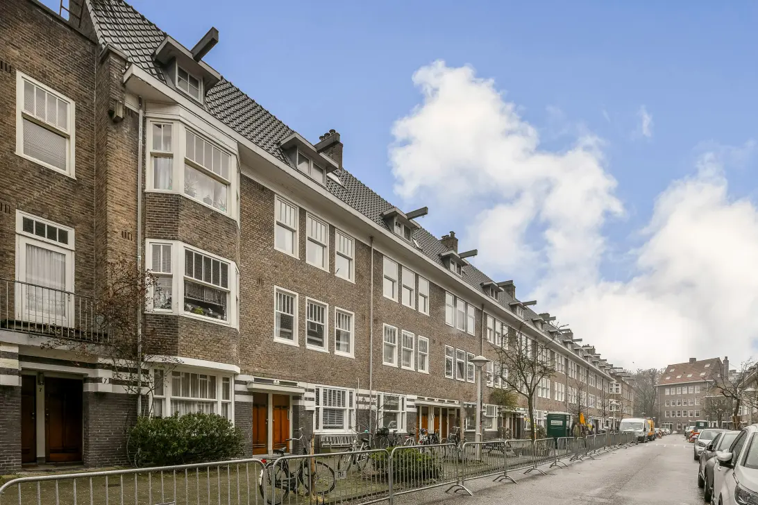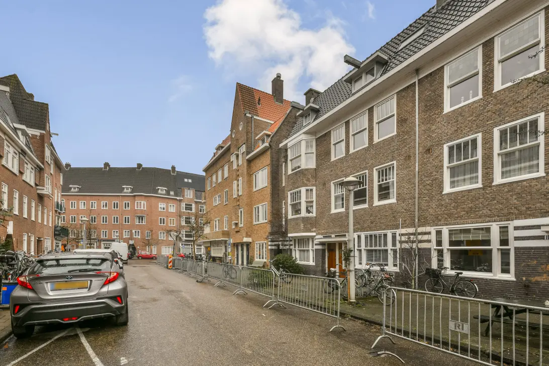 Gelegen in de gewilde Hoofddorppleinbuurt (Stadsdeel Zuid), aan een straat met een brede stoep om een bankje te plaatsen.