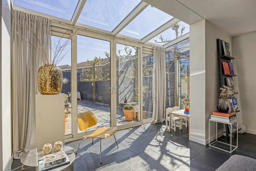 Dankzij de gunstige hoekligging en de oostelijk gelegen achtertuin profiteert u hier van verrassend veel zon. Niet alleen de ochtendzon valt prettig de tuin binnen, ook de zuidelijke zon bereikt de tuin gedurende de dag. Zo kunt u hier vrijwel de hele dag genieten van een lichte en zonnige buitenruimte. In de voortuin is het ’s avonds bovendien heerlijk vertoeven in de laatste zonnestralen. De fraai aangelegde achtertuin is verzorgd en compleet ingericht, met een houten berging voorzien van elektra, een buitenkraan en sfeervolle buitenverlichting. Een fijne plek om te ontspannen, te tuinieren of gezellig buiten te eten.