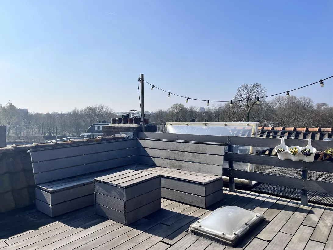 Located on Zaandijkstraat in Amsterdam, this practically laid-out, south-facing and not over looked flat of approximately 69 m² is spread over two floors on the second and third storeys of a beautiful building. It features a spacious roof terrace as an additional outdoor space and is on its own plot of land!