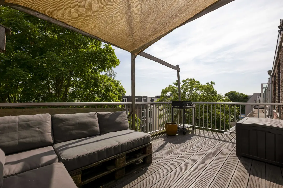 De circa 10 meter diepe achtertuin is gelegen op het noordoosten en hier heeft men de ochtendzon !