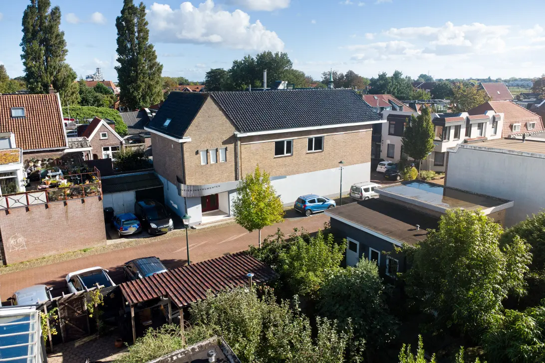 De entree bevindt zich centraal in het pand en geeft toegang tot een royale woon-/winkelruimte die op verschillende manieren te gebruiken is. Momenteel is deze in gebruik als woonkamer en kantoor, met de oorspronkelijke elementen in het zicht, ingebouwde kasten en een pantry. Aan deze zijde geniet je van een prachtig uitzicht over de Zaan.