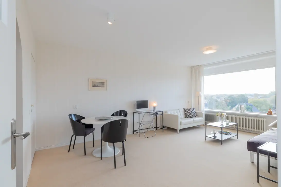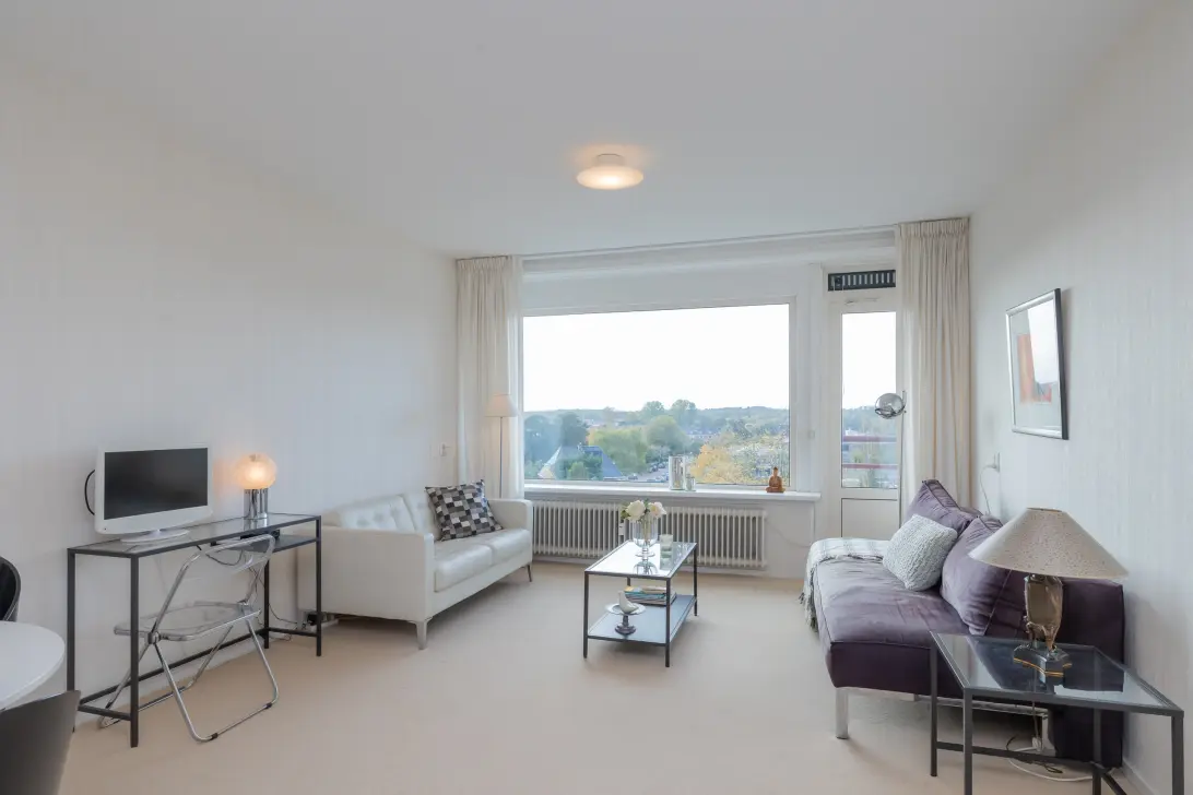 Dit uitstekend onderhouden appartement is gemoderniseerd en heeft een prachtig vrij uitzicht vanwege de hoge ligging. In de verte kun je de duinen zien liggen. Door de ligging van het balkon op het westen kunnen wij spreken van de mooiste ligging in dit complex. Er is een open keuken met inbouwapparatuur die grenst aan de woonkamer waardoor je tijdens het koken contact kunt hebben met partner of bezoek.