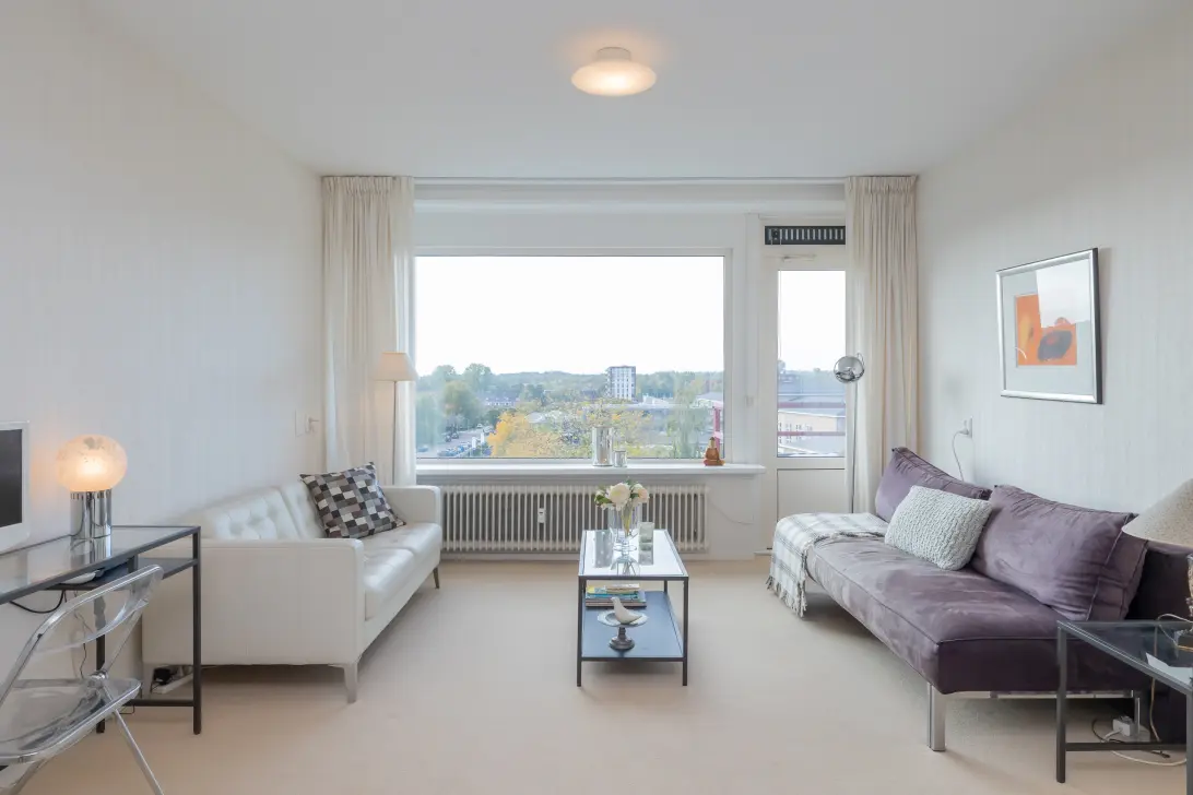 Zelfstandig, veilig en zorgeloos wonen in dit heerlijke lichte en gemoderniseerde tweekamerappartement op de zesde verdieping van deze goed onderhouden seviceflat Kinheim.