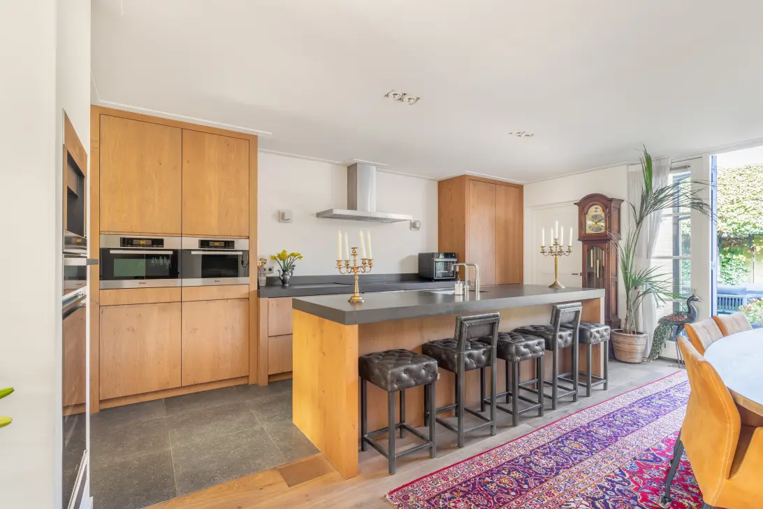 De woning is aanzienlijk vergroot door een aanbouw aan de woonkamer, waar een prachtige en ruime woonkeuken is gerealiseerd. Daarnaast is de voormalige garage omgebouwd tot een extra (tv-)kamer met een eigen slaapkamer, en is er een opbouw geplaatst waardoor er nog meer woonruimte is ontstaan. De luxe woonkeuken vormt zonder twijfel de echte eyecatcher van de woning. Het grote kookeiland en de hoogwaardige inbouwapparatuur, waaronder een wijnklimaatkast, maken dit een heerlijke plek om te koken. Via de openslaande deuren staat de woonkeuken in directe verbinding met de mooi aangelegde achtertuin. Ook de eerste verdieping is volledig verbouwd en opnieuw ingedeeld voor een optimale benutting van de ruimte. De tweede verdieping geeft nog de mogelijkheid om een extra slaapkamer te creëren.