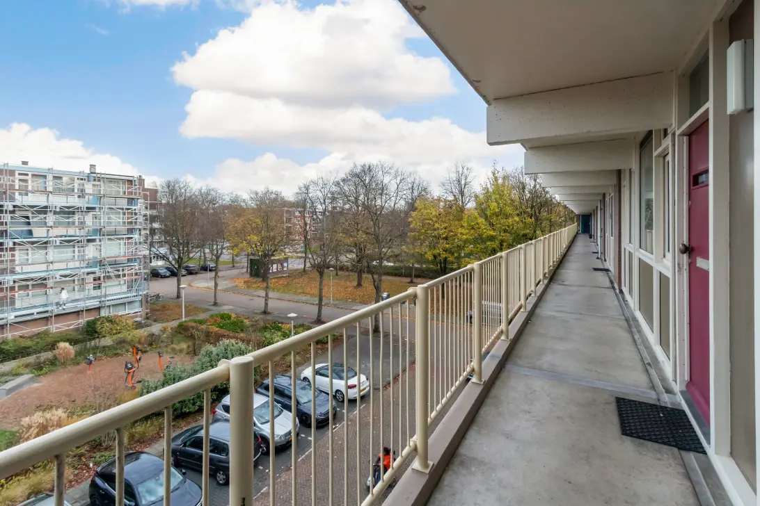 Via de lift of de trap is de galerij op de derde verdieping te bereiken. Via ruim entree met intercominstallatie zijn alle vertrekken bereikbaar. De woonkamer bestaat uit twee kamers gescheiden door een en suite schuifdeur, heeft een balkon op het zuid westen met zonnescherm, is van ruim formaat en biedt voldoende mogelijkheden voor diverse opstellingen. Indien gewenst kan de grote kast schuifkast in de hal eenvoudig verwijderd worden, zodat er twee aparte kamers gemaakt kunnen worden. De gesloten keuken heeft een rechte keukenopstelling voorzien van apparatuur (gaskookplaat, afzuigkap, koel-/vriescombinatie), opstelling CV-Ketel (Intergas, 2006). Het appartement beschikt over twee goed bemeten slaapkamers. De badkamer is voorzien van modern tegelwerk en sanitair, met wastafel, douche, toilet en de wasmachineaansluiting. Er is een berging in de onderbouw aanwezig.
