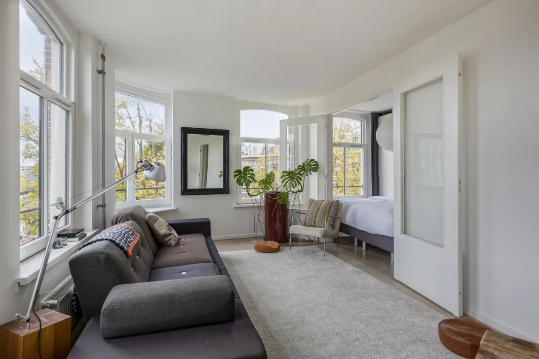 Then this lovely one-bedroom apartment on the corner of the Zoutkeetsgracht is perfect for you! Located on the third floor of an elegant building, it immediately stands out for its abundance of natural light. The entire façade features windows, giving the home a wonderfully open and bright atmosphere. The living room offers beautiful views of the canal and the Westertoren. From your bed, you can look out over an old tree and the Zoutkeetsplein.
