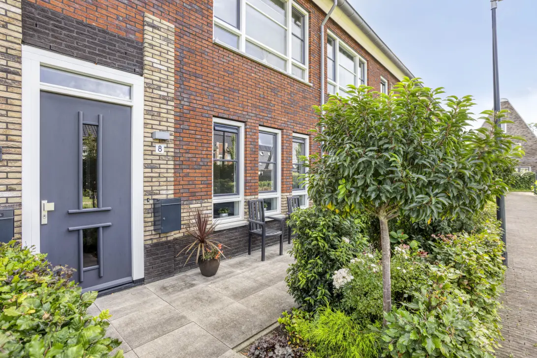 De woning beschikt over een zonnige voortuin waar u in alle rust kunt genieten van het buitenleven. Of het nu gaat om een kop koffie in de ochtendzon of een gezellig moment met vrienden: hier woont u echt in alle rust en privacy.