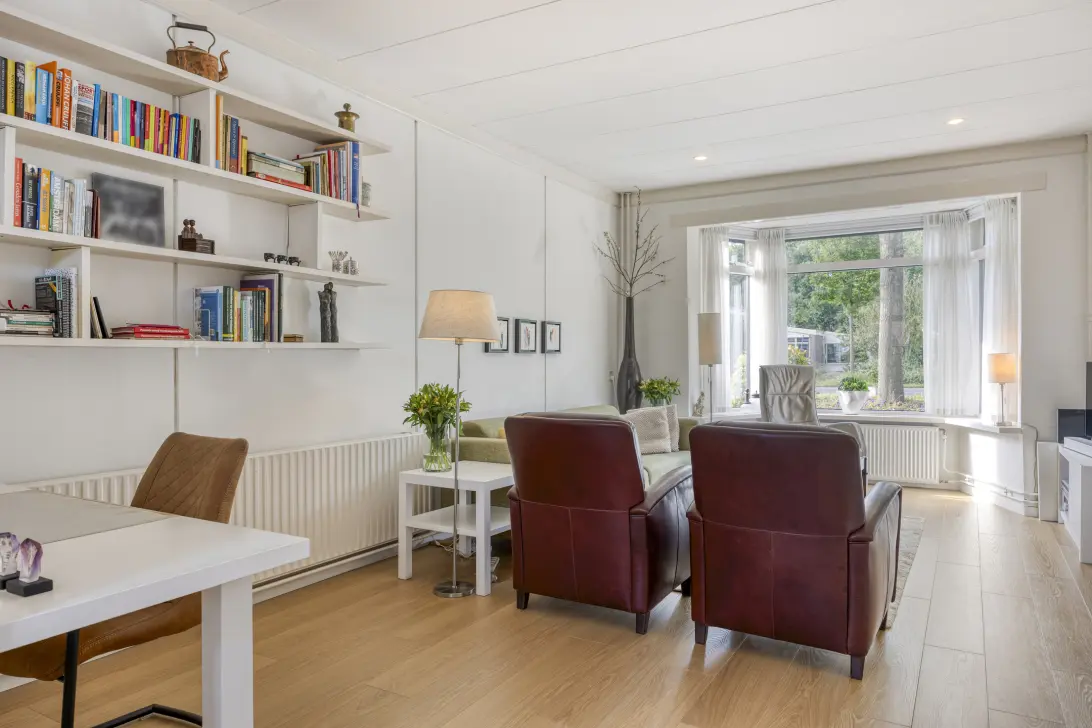 Bij binnenkomst via de entree word je verwelkomd in de hal, waarna je de ruime woonkamer betreedt. De fraaie erker en grote ramen zorgen voor een lichte en warme uitstraling. Een kamer die uitnodigt tot ontspannen, praten en simpelweg genieten van thuis!