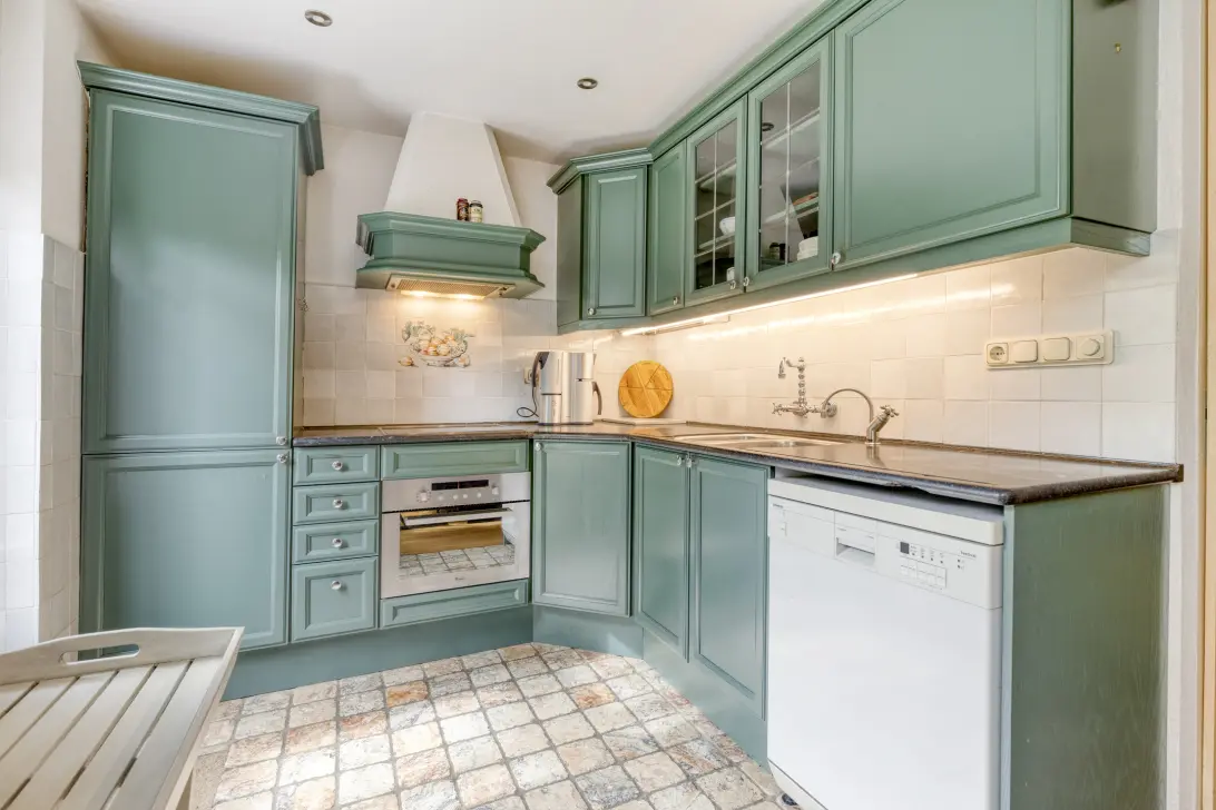 De woonkamer is ruim uitgevoerd. Aan de achterzijde is de keuken gesitueerd, grenzend aan de serre met schuifpui naar de tuin. Deze serre vormt een heerlijke plek om elk seizoen van het uitzicht te genieten.